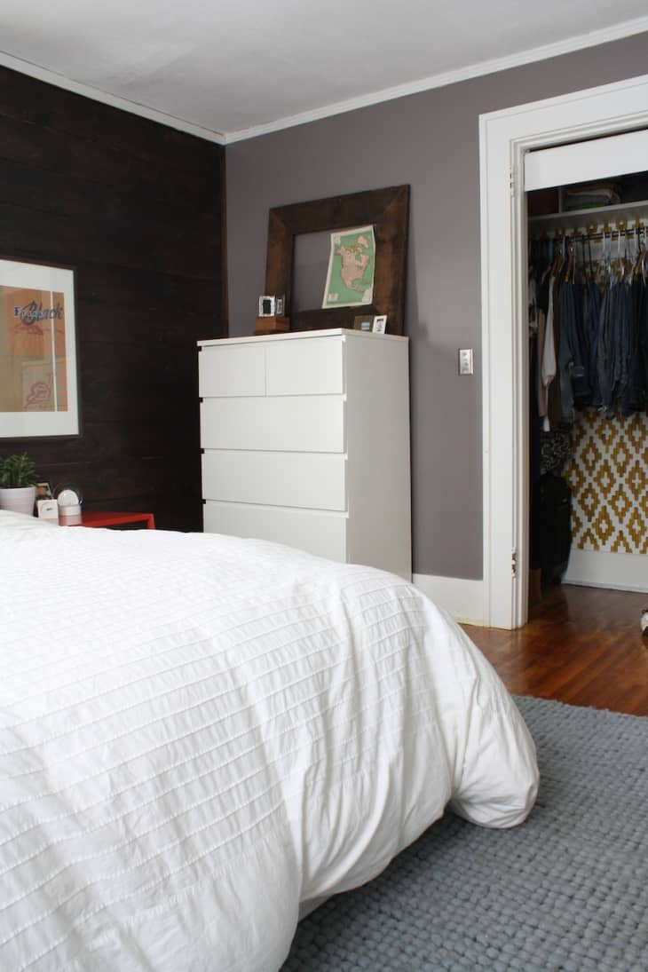 A black accent wall can pleasantly offset a gray bedroom without straying too far from a bolder color palette, as proven by Emily’s bedroom in Rochester, New York. If you hopped on the gray decor trend that’s been going strong for a few years now, know that black is a perfect color pairing for anything from lighter dove gray, as seen here, to deeper charcoals.