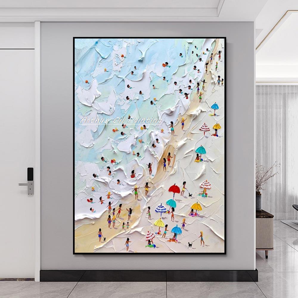 Arthyx Handpainted Thick Texture Beach Landscape Oil Painting Abstract Canvas Modern Home Decor Wall Art Picture For Living Room