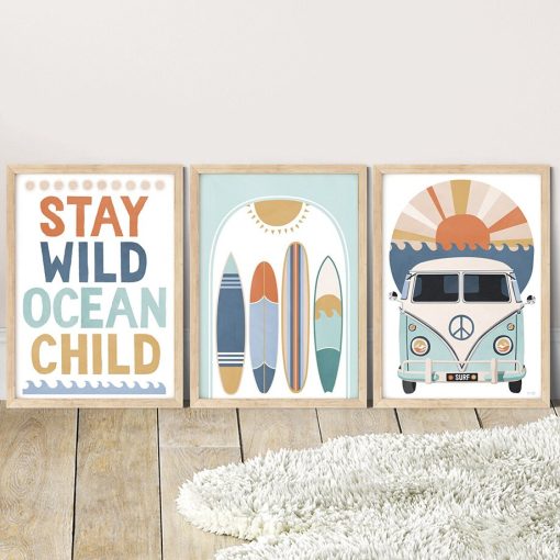 15 reviews for Ocean Shark Rainbow Car Surfboard Nursery Wall Art Canvas Painting Nordic Posters And Prints Wall Pictures Baby Kids Room Decor