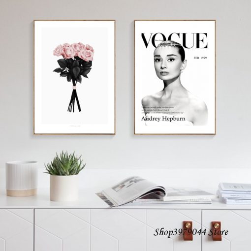 15 reviews for Audrey Hepburn Fashion Canvas Painting Pink Flower Poster Nordic Style Vogue Print Modern Wall Pictures For Living Room Decor